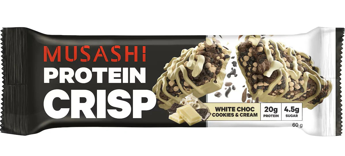Musashi Protein Crisp White Choc Cookies and Cream 60g x 12 Bars